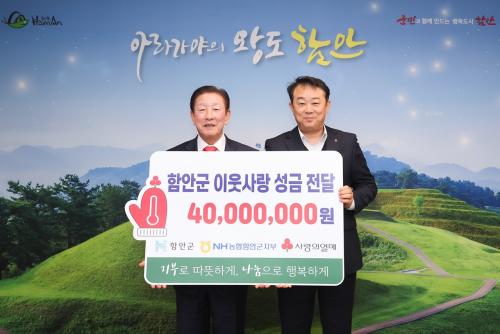 [½Åµ¿¾Æ¹æ¼Û °æ³²ÇÔ¾È=À̽ŵ¿±âÀÚ] ÇԾȱºÀº 30ÀÏ NH³óÇù ÇԾȱºÁöºÎ¿¡¼­ ½Ò 10kg 400Æ÷(1000¸¸¿ø »ó´ç), ÀÌºÒ 3000¸¸ ¿ø »ó´ç ÃÑ 4000¸¸ ¿øÀÇ ¼ºÇ°À» ±º¿¡ ±âºÎÇß´Ù°í ¹àÇû´Ù. À̳¯ ±âŹ½Ä¿¡´Â Á¶±ÙÁ¦ ÇԾȱº¼ö¿Í ½ÅÇØ±Ù ÁöºÎÀå ¹× °ü°èÀÚµéÀÌ Âü¼®ÇßÀ¸¸ç ±âºÎµÈ ¼º¡¦
