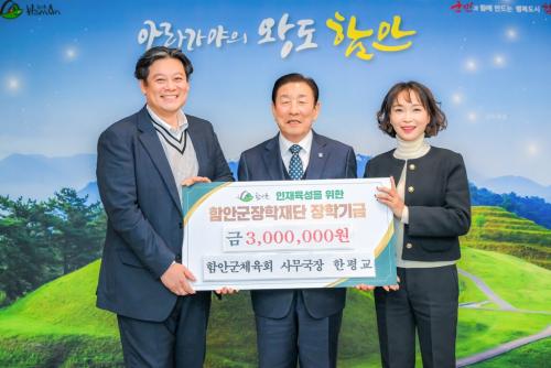 [½Åµ¿¾Æ¹æ¼Û °æ³²ÇÔ¾È=À̽ŵ¿±âÀÚ] Áö¿ª±³À° ¹ßÀü°ú ¹Ì·¡ ÀÎÀç ¾ç¼ºÀ» À§ÇØ ¼³¸³µÈ (Àç)ÇԾȱºÀåÇÐÀç´Ü¿¡ ¶æ±íÀº ÀåÇбâ±Ý ±âŹÀÌ À̾îÁ® Áö¿ª¿¡ µû¶æÇÑ ¿Â±â¸¦ ÀüÇϰí ÀÖ´Ù. ¸ÕÀú, ÇԾȱºÃ¼À°È¸ ÇÑÆò±³ »ç¹«±¹ÀåÀº Áö³­ÇØ 31ÀÏ ¹è¿ìÀÚ Á¶Á¤Àº¾¾¿Í ÇÔ²² ÇԾȱºÀåÇС¦