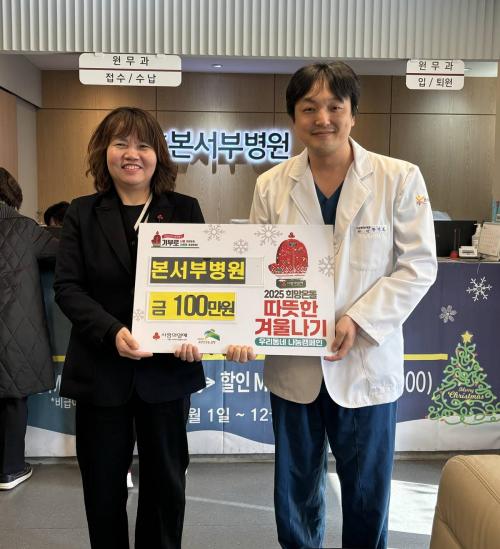 [½Åµ¿¾Æ¹æ¼Û ÀºÆò±¸=À̽ŵ¿±âÀÚ] ÀºÆò±¸ ÀÀ¾Ï1µ¿Àº Áö³­´Þ 30ÀÏ º»¼­ºÎº´¿øÀÌ µû¶æÇÑ °Ü¿ï³ª±â ¼º±Ý 1¹é¸¸ ¿øÀ» ±âºÎÇß´Ù°í ¹àÇû´Ù. º»¼­ºÎº´¿øÀº Áö¿ª»çȸÀÇ °Ç°­À» Ã¥ÀÓÁö´Â º´¿øÀ¸·Î Àü¹®ÀûÀÎ ÀÇ·á ¼­ºñ½º¸¦ Á¦°øÇϸç ÁֹεéÀÇ °Ç°­ ÁõÁø¿¡ ±â¿©Çϰí ÀÖ´Ù. Ȳ¹Î¡¦