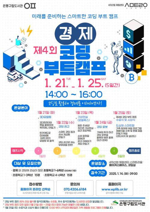 [½Åµ¿¾Æ¹æ¼Û ÀºÆò±¸=À̽ŵ¿±âÀÚ] ÀºÆò±¸´Â ¿À´Â 21ÀϺÎÅÍ 25ÀϱîÁö 5Àϰ£ ÃʵîÇб³ °Ü¿ï¹æÇÐÀ» ¸Â¾Æ 4Â÷»ê¾÷ üÇè¼¾ÅÍ ½º¸¶Æ®¸®¿ò¿¡¼­ ´Ü±â°£¿¡ ÄÚµù Áö½ÄÀ» ¹è¿ï ¼ö ÀÖ´Â ¡®ÄÚµù ºÎÆ® Ä·ÇÁ¡¯¸¦ ¿î¿µÇÑ´Ù°í ¹àÇû´Ù. ¡®ÄÚµù ºÎÆ® Ä·ÇÁ¡¯´Â ȸÂ÷º° »õ·Î¿î ÁÖÁ¦¸¦ ¼±Á¤ÇØ¡¦