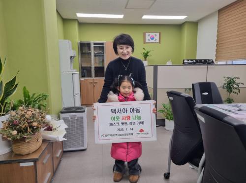 [½Åµ¿¾Æ¹æ¼Û = À±¹Î½Ä±âÀÚ] ÀÎõ ¼­±¸ û¶ó3µ¿ ÁֹΠ¹é¿µÈ¯ ¾¾´Â Áö³­ 14ÀÏ µþ ¹é¼­¾Æ ¾Æµ¿ÀÇ »ýÀÏÀ» ±â³äÇÏ¿© ¾î·Á¿î ÀÌ¿ô¿¡°Ô Àü´ÞÇØ´Þ¶ó¸ç ¸¶½ºÅ© 1,000°³, ÇÞ¹Ý 100°³¿Í ¶ó¸é 80°³¸¦ û¶ó3µ¿ ÇàÁ¤º¹Áö¼¾ÅÍ(µ¿Àå °íÀº¼±)¿¡ ±âŹÇß´Ù. ¹é¿µÈ¯ ¾¾´Â 2020³âºÎÅÍ¡¦