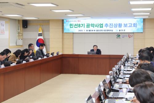 [½Åµ¿¾Æ¹æ¼Û °æ³²ÇÔ¾È=À̽ŵ¿±âÀÚ] ÇԾȱºÀº 20ÀÏ ±ºÃ» 3Ãþ ÁßȸÀǽǿ¡¼­ °ø¾à»ç¾÷ÀÇ Â÷Áú ¾ø´Â ÁøÇà »óȲÀ» Á¡°ËÇϱâ À§ÇÑ ¡®¹Î¼± 8±â °ø¾à»ç¾÷ ÃßÁø»óȲ º¸°íȸ¡¯¸¦ °³ÃÖÇß´Ù. À̳¯ º¸°íȸ¿¡´Â °ø¾à ÃßÁøºÎ¼­ ±¹¡¤¼ÒÀå ¹× ºÎ¼­Àå µî 30¿© ¸íÀÌ Âü¼®ÇßÀ¸¸ç °ø¾à Ãß¡¦