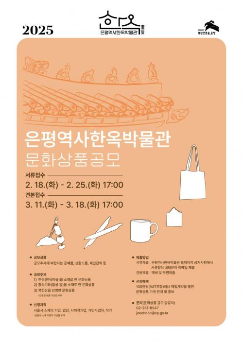 [½Åµ¿¾Æ¹æ¼Û ÀºÆò±¸=À̽ŵ¿±âÀÚ] ÀºÆò±¸´Â ÀºÆò¿ª»çÇÑ¿Á¹Ú¹°°ü ¹®È­»óǰ °ø¸ðÀüÀ» ³»´Þ 18ÀϺÎÅÍ 25ÀϱîÁö °³ÃÖÇØ ¿ì¼öÇÑ ¹®È­»óǰÀ» ¹ß±¼ÇÑ´Ù°í ¹àÇû´Ù. À̹ø °ø¸ðÀü ÁÖÁ¦´Â ÇÑ¿Á ¶Ç´Â ÇÑ¿Á¸¶À»À» ¼ÒÀç·Î ÇÑ ¹®È­»óǰ, Àå½Ä ±â¿Í, Àâ»ó µîÀ» ¼ÒÀç·ÎÇÑ ¹®È­»óǰ, ºÏÇÑ¡¦