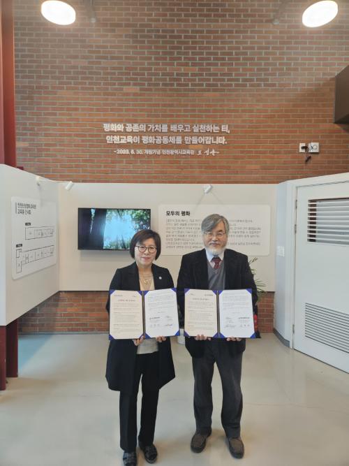 [½Åµ¿¾Æ¹æ¼Û = À±¹Î½Ä±âÀÚ] ÀÎõ±¤¿ª½Ã±³À°Ã»³­Á¤ÆòÈ­±³À°¿ø(¿øÀå ±è¸í¼ø)Àº Áö³­ 22ÀÏ ºñÆø·ÂÆòÈ­¹°°á(´ëÇ¥ ¹Ú¼º¿ë)°ú ÆòÈ­±³À° Çù·Âü°è ±¸ÃàÀ» À§ÇÑ ¾÷¹«Çù¾à(MOU)À» ü°áÇß´Ù. ¾ç ±â°üÀº À̹ø Çù¾àÀ¸·Î ¡âÆòÈ­±³À° ÇÁ·Î±×·¥ °øµ¿ ¿¬±¸ ¹× ±³À°ÀÚ·á °³¹ß ¡âÆòÈ­¡¦