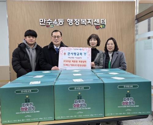 [½Åµ¿¾Æ¹æ¼Û = À±¹Î½Ä±âÀÚ] ÀÎõ½Ã ³²µ¿±¸ ¸¸¼ö4µ¿ ÇàÁ¤º¹Áö¼¾ÅÍ´Â Å«»ç¶û±³È¸·ÎºÎÅÍ ¼Ò¿Ü °èÃþÀ» À§ÇÑ µû¶æÇÑ Èñ¸Á»óÀÚ 10»óÀÚ(200¸¸ ¿ø »ó´ç)¸¦ ±âºÎ¹Þ¾Ò´Ù°í 23ÀÏ ¹àÇû´Ù. ÈÄ¿øÇ°Àº ¸¸¼öµ¿¿¡ À§Ä¡ÇÑ Å«»ç¶û±³È¸ ±³ÀεéÀÌ Á¤¼ºÀ¸·Î ¸ðÀº ±â±ÝÀ¸·Î ¸¶·ÃµÅ, µ¿À» ¡¦