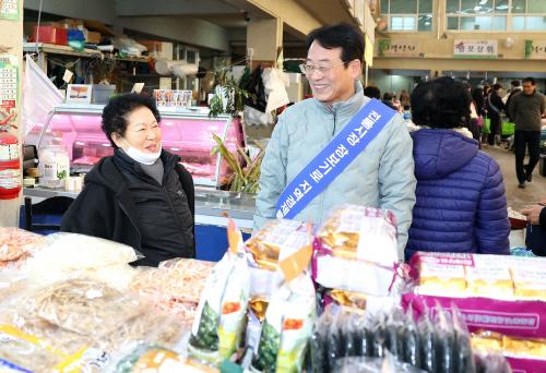 [½Åµ¿¾Æ¹æ¼Û Àü³²°­Áø=¹Ú±¤¿Á±âÀÚ] °­Áø¿ø °­Áø±º¼ö ³»¿Ü°¡ Áö³­ 24ÀÏ ¼³ ¸íÀýÀ» ¾ÕµÎ°í ÈÆÈÆÇÑ ¸íÀý ºÐÀ§±â¸¦ Á¶¼ºÇϰí, °ü³» ÀüÅë½ÃÀå »óÀεéÀ» °Ý·ÁÇϱâ À§ÇØ °­ÁøÀ¾½ÃÀåÀ» ¹æ¹®Çß´Ù. °­ ±º¼ö´Â À§ÃàµÈ ¼Òºñ½É¸®¿Í Àå±â°£ÀÇ °æ±â ºÒȲÀ¸·Î ¸ÅÃâ¿¡ Å« Ÿ°ÝÀ» ¹ÞÀº ¡¦