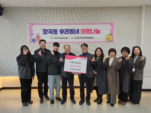 [½Åµ¿¾Æ¹æ¼Û ½ÃÈï½Ã=À̽ŵ¿±âÀÚ] ¢ß´ÙÈû°Ç¼³Àº Áö³­ 23ÀÏ Àå°îµ¿ ÇàÁ¤º¹Áö¼¾Å͸¦ ¹æ¹®ÇØ Áö¿ª ³» µµ¿òÀÌ ÇÊ¿äÇÑ ÀÌ¿ô¿¡°Ô ÈûÀ» º¸Å°íÀÚ »ç¶ûÀÇ ÈÄ¿ø±Ý 500¸¸ ¿øÀ» Àü´ÞÇß´Ù. ¢ß´ÙÈû°Ç¼³Àº ¾ÆÆÄÆ® °ñÁ¶ Àü¹® ½Ã°ø¾÷ü·Î, Áö³­ ¿¬¸»¿¡ ½ÃÈï½Ã1ÆÛ¼¾Æ®º¹ÁöÀç´Ü¿¡ 1õ¸¸¡¦