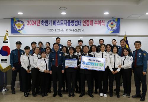 [½Åµ¿¾Æ¹æ¼Û Àü³²¼øÃµ=¹Ú±¤¿Á±âÀÚ]¼øÃµ°æÂû¼­(¼­Àå ±¹½ÂÀÎ)´Â Áö³­ 22ÀÏ Àü³²°æÂûû ÁÖ°ü 2024³â ÇϹݱ⠺£½ºÆ® ÀÚÀ²¹æ¹ü´ë·Î ¼±Á¤µÈ ¼øÃµ°æÂû¼­ ¿©¼ºÀÚÀ²¹æ¹ü´ë¿¡ ÀÎÁõÆÐ¿Í °¨»çÀåÀ» ¼ö¿©Çß´Ù. ¼øÃµ ¿©¼ºÀÚÀ²¹æ¹ü´ë´Â ÃÖ¹Î°æ ´ëÀåÀ» Áß½ÉÀ¸·Î 37¸íÀÇ ´ë¿øÀ¸·Î ±¸¼ºÇÏ¡¦