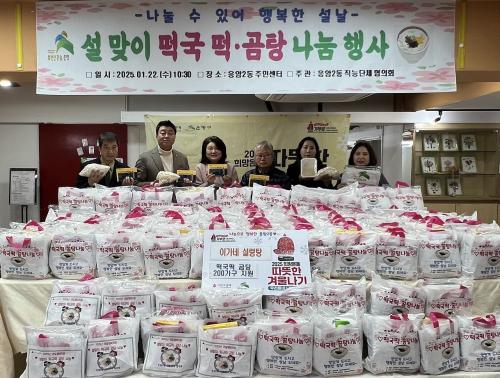 [½Åµ¿¾Æ¹æ¼Û ÀºÆò±¸=À̽ŵ¿±âÀÚ] ÀºÆò±¸ ÀÀ¾Ï2µ¿Àº 22ÀÏ ¼³¸ÂÀÌ ÀÌ¿ôµ½±â ³ª´®Çà»ç¸¦ °³ÃÖÇϰí À½½Ä·ù¿Í ÀǺ¹ µî ¹°Ç°²Ù·¯¹Ì¸¦ ±âºÎ¹Þ¾Ò´Ù°í ¹àÇû´Ù. Ãë¾à°èÃþ 200°¡±¸¿¡ Àü´ÞµÈ ¹°Ç°²Ù·¯¹Ì´Â Ǫ¸¥ »õ¸¶À»±Ý°í¿¡¼­ ¶±±¹¶±, À̰¡³× ¼³··ÅÁ¿¡¼­ °õÅÁ 200°³, Áö´Ï°ñÇÁ¿¡¡¦