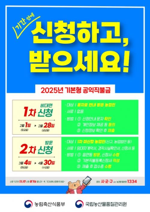 [½Åµ¿¾Æ¹æ¼Û ÀÎõ= À±¹Î½Ä±âÀÚ] (±¸Ã»Àå Â÷ÁØÅÃ)°¡ À̹ø ´ÞºÎÅÍ ±âº»Çü °øÀÍÁ÷ºÒ±Ý µî·Ï½Åû Á¢¼ö¸¦ ¹Þ´Â´Ù. °øÀÍÁ÷ºÒ±ÝÀº ³ó¾÷¡¤³óÃÌÀÇ °øÀͱâ´É ÁõÁø°ú ³ó¾÷ÀÎÀÇ ¼Òµæ¾ÈÁ¤À» À§ÇØ ÀÏÁ¤ ÀÚ°ÝÀ» °®Ãç Áؼö»çÇ×À» ÀÌÇàÇÏ´Â ³ó¾÷Àο¡°Ô Áö±ÞÇÏ´Â º¸Á¶±ÝÀÌ´Ù. ½Åû¡¦