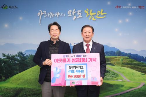 [½Åµ¿¾Æ¹æ¼Û °æ³²ÇÔ¾È=À̽ŵ¿±âÀÚ] ÇԾȱºÀº Áö³­ 3ÀÏ µ¿¾çÇÏÀÌÅ×Å©¿¡¼­ ¾î·Á¿î ÀÌ¿ôÀ» À§ÇÑ ¼º±Ý 200¸¸ ¿øÀ» ±âºÎÇß´Ù°í ¹àÇû´Ù. À̳¯ ±âʽÄÀº ±ºÃ» ±º¼ö½Ç¿¡¼­ ÁøÇàµÆÀ¸¸ç Á¶±ÙÁ¦ ÇԾȱº¼ö, ÃÖºÀÈÆ ´ëÇ¥¿Í °ü°èÀÚµéÀÌ Âü¼®Çß´Ù. ±âŹµÈ ¼º±ÝÀº ÇԾȱº °ü³» Àú¼Òµæ¡¦