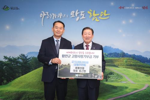 ¼¼±¤»ê¾÷ ´ëÇ¥, ÇԾȱº °íÇâ»ç¶û±âºÎÁ¦ µ¿Âü °íÇâ»ç¶û±âºÎ±Ý 1000¸¸ ¿ø ±âŹ