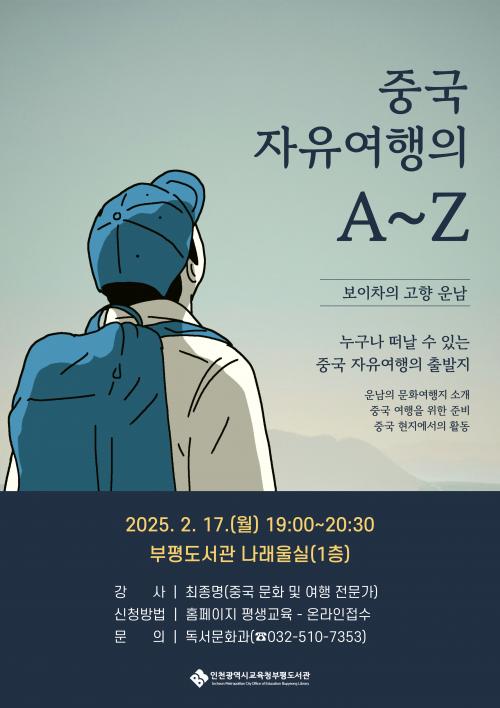 ÀÎõ±¤¿ª½Ã±³À°Ã»ºÎÆòµµ¼­°ü, ¡®¿ì¸®¸¶À» ÀÕ´Ù+Àд١¯ Àι®ÇÐ °­¿¬ ¡®Áß±¹ ÀÚÀ¯¿©ÇàÀÇ A~Z¡¯ °³ÃÖ