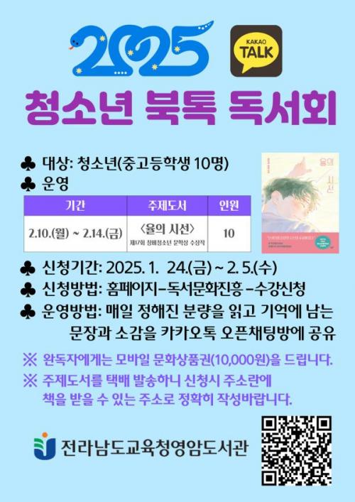 [½Åµ¿¾Æ¹æ¼Û Àü³²¿µ¾Ï=À̽ŵ¿±âÀÚ] Àü¶ó³²µµ±³À°Ã»¿µ¾Ïµµ¼­°ü(±¸. ¿µ¾Ï°ø°øµµ¼­°ü)Àº ¿À´Â 2¿ù 10ÀÏ(¿ù)ºÎÅÍ 2¿ù 14ÀÏ(±Ý)±îÁö ¿µ¾ÏÁö¿ª û¼Ò³âµéÀÇ Ã¥ Àд ½À°ü Çü¼ºÀ» À§ÇØ ¡®Ã»¼Ò³â ºÏÅå µ¶¼­È¸¡¯¸¦ ¿î¿µÇÑ´Ù. Âü¿©¸¦ Èñ¸ÁÇÑ Ã»¼Ò³âÀº ¿µ¾ÏÁß, ¿µ¾Ï»ïÈ£Áß, ¿µ¾Ï¡¦