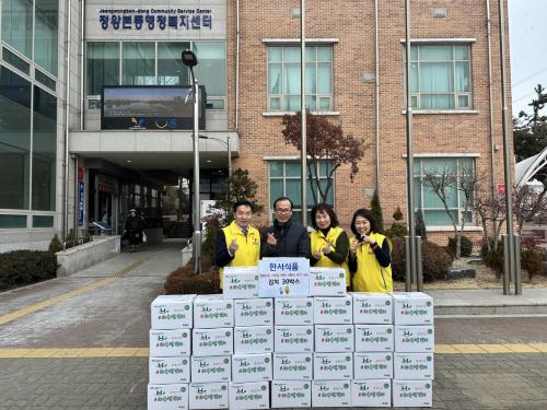 [½Åµ¿¾Æ¹æ¼Û ½ÃÈï½Ã=À̽ŵ¿±âÀÚ] ½ÃÈï½Ã Á¤¿Õº»µ¿ ÇàÁ¤º¹Áö¼¾ÅÍ¿¡ Áö³­ 6ÀÏ ¢ßÇѼ­½ÄǰÀÌ ¹æ¹®ÇØ ¾î·Á¿î ÀÌ¿ôÀ» À§ÇØ ±èÄ¡(10kg) 30»óÀÚ¸¦ ÈÄ¿øÇß´Ù. ¢ßÇѼ­½ÄǰÀº Áö¿ª»çȸ ³ª´®ÀÇ ½Çõ¿¡ ¾ÕÀå¼­´Â ±â¾÷À¸·Î, 2018³âºÎÅÍ ÇöÀç±îÁö ²ÙÁØÈ÷ ³ª´® Ȱµ¿À» À̾î¿À°í ÀÖ´Ù¡¦