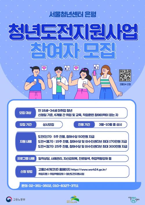 [½Åµ¿¾Æ¹æ¼Û ÀºÆò±¸=À̽ŵ¿±âÀÚ] ÀºÆò±¸´Â ¡®Ã»³âµµÀüÁö¿ø»ç¾÷ ´õWE·Î¡¯ Âü¿©ÀÚ¸¦ 10ÀϺÎÅÍ ¸ðÁýÇÑ´Ù°í ¹àÇû´Ù. ¡®Ã»³âµµÀüÁö¿ø»ç¾÷¡¯ÀºÀº °í¿ë³ëµ¿ºÎ °ø¸ð»ç¾÷À¸·Î Ãë¾÷¿¡ ¾î·Á¿òÀ» °Þ°í Àִ û³âµéÀ» Áö¿øÇÏ´Â ÇÁ·Î±×·¥ÀÌ´Ù. ±¸´Â Áö³­ÇØ Ã»³â 180¸íÀ» ¹ß±¼ÇÏ°í ¸Â¡¦