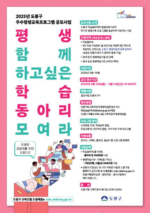 [½Åµ¿¾Æ¹æ¼Û µµºÀ±¸=À̽ŵ¿±âÀÚ] µµºÀ±¸°¡ °ø¸ð¸¦ ÅëÇØ ¼±Á¤µÈ ÇнÀµ¿¾Æ¸®¿Í Æò»ý±³À°±â°ü‧´Üü¿¡ °¢°¢ 100¸¸ ¿ø°ú 200¸¸ ¿øÀ» Áö¿øÇÑ´Ù. ±¸´Â 2¿ù 14ÀϱîÁö 2025³â µµºÀ±¸ ¿ì¼ö Æò»ý±³À° ÇÁ·Î±×·¥À» °ø¸ðÇÑ´Ù°í ¹àÇû´Ù. °ø¸ð ºÐ¾ß´Â ÇнÀµ¿¾Æ¸®(10°³ ÇÁ·Î¡¦