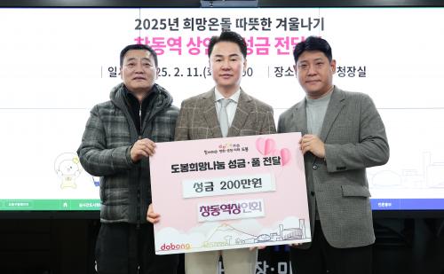[½Åµ¿¾Æ¹æ¼Û µµºÀ±¸=À̽ŵ¿±âÀÚ] µµºÀ±¸°¡ 2¿ù 11ÀÏ Ã¢µ¿¿ª»óÁ¡°¡ »óÀÎȸ(´ëÇ¥: ¼Õâ·¡, ÀåÁØ¿µ)·ÎºÎÅÍ µû¶æÇÑ °Ü¿ï³ª±â ¼º±ÝÀ¸·Î 200¸¸ ¿øÀ» ±âºÎ¹Þ¾Ò´Ù°í ¹àÇû´Ù. ⵿¿ª»óÁ¡°¡ »óÀÎȸ´Â Áö¿ª ³» ÀÌ¿ô»ç¶ûÀ» ½ÇõÇϰíÀÚ È¸¿øµéÀÇ µû¶æÇÑ ¸¶À½À» ¸ð¾Æ ²ÙÁØÈ÷ ±âºÎ¸¦¡¦