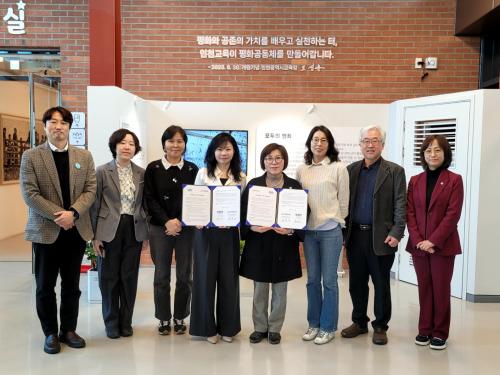 [½Åµ¿¾Æ¹æ¼Û ÀÎõ= À±¹Î½Ä±âÀÚ] ÀÎõ±¤¿ª½Ã±³À°Ã»³­Á¤ÆòÈ­±³À°¿ø(¿øÀå ±è¸í¼ø)Àº 14ÀÏ, ÆòÈ­±³À° Àü¹®±â°ü »ç´Ü¹ýÀÎÇǽº¸ð¸ð(´ëÇ¥ ¹®¾Æ¿µ)¿Í¡®ÆòÈ­±³À° Çù·Â ü°è ±¸ÃàÀ» À§ÇÑ ¾÷¹«Çù¾à(MOU)¡¯À» ü°áÇß´Ù. '°¡¸£Ä¡Áö ¾Ê´Â ÆòÈ­±³À°'À» ÁÖ¿ä °¡Ä¡·Î ÆòÈ­±³À°À» ½Ç¡¦