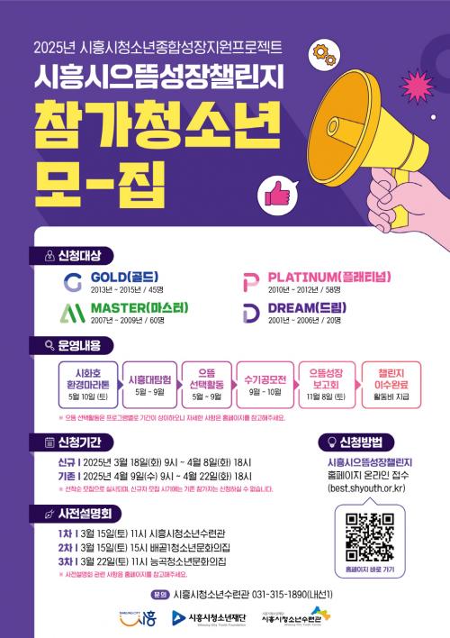 [½Åµ¿¾Æ¹æ¼Û ½ÃÈï½Ã=À̽ŵ¿±âÀÚ] ½ÃÈï½Ã´Â 3¿ù 18ÀϺÎÅÍ 4¿ù 22ÀϱîÁö 5ÁÖ°£ ¡®½ÃÈï½ÃÀ¸¶ä¼ºÀå縰Áö¡¯ Âü°¡ û¼Ò³âÀ» ¸ðÁýÇÑ´Ù. ¡®½ÃÈï½ÃÀ¸¶ä¼ºÀå縰Áö¡¯´Â 2021³â (Àç)½ÃÈï½Ãû¼Ò³âÀç´ÜÀÌ µ¶ÀÚÀûÀ¸·Î °³¹ßÇÑ Ã»¼Ò³âÁ¾ÇÕ¼ºÀåÁö¿ø ÇÁ·ÎÁ§Æ®·Î, 2022³âºÎÅÍ »ý¾ÖÁֱ⿡¡¦