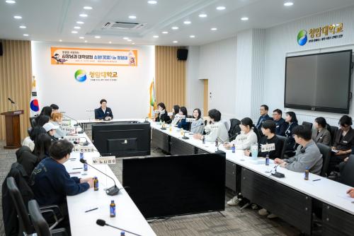 [½Åµ¿¾Æ¹æ¼Û ¼øÃµ=±è¿ëÈÆ ±âÀÚ] ¼øÃµ½Ã(½ÃÀå ³ë°ü±Ô)´Â Áö³­ 11ÀÏ Ã»¾Ï´ëÇб³ À̳뺣ÀÌ¼Ç È¦¿¡¼­ 22¸íÀÇ ¹Ý·Áµ¿¹°º¸°Ç°ú Çлýµé°ú ÇÔ²² ¡®µû¶æÇÑ °ø°¨¼ÒÅë, ¼Ò´ã(áÅÓÈ)¡¯À» °³ÃÖÇß´Ù. À̹ø ¼Ò´ãÀº ±âÁ¸ÀÇ °­¿¬ Çü½Ä¿¡¼­ ¹þ¾î³ª, ³ë°ü±Ô ¼øÃµ½ÃÀå°ú û¾Ï´ë ¹Ý·Áµ¿¹°º¸¡¦