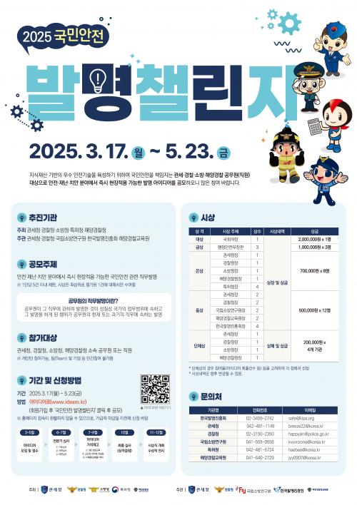 [½Åµ¿¾Æ¹æ¼Û ÀÎõ= À±¹Î½Ä±âÀÚ] ÇØ¾ç°æÂûû(ûÀå ±è¿ëÁø)Àº 3¿ù 17ÀÏ ~ 5¿ù 23ÀϱîÁö °ü¼¼Ã», °æÂûû, ¼Ò¹æÃ», ƯÇãû°ú ÇÔ²² ±¹¹Î¾ÈÀü À§ÇÑ¡¸2025 ±¹¹Î¾ÈÀü ¹ß¸í縰Áö¡¹¾ÆÀ̵ð¾î¸¦ Á¢¼öÇÑ´Ù°í ¹àÇû´Ù. ¿ÃÇØ 8ȸ°¸¦ ¸Â´Â ±¹¹Î¾ÈÀü ¹ß¸í縰Áö´Â ÇØ¾ç°æÂûû¡¤°ü¼¼Ã»¡¦