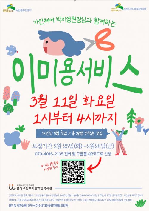 [½Åµ¿¾Æ¹æ¼Û ÀºÆò±¸=À̽ŵ¿±âÀÚ] ÀºÆò±¸ ³ì¹øµ¿Àº Áö³­ 11ÀÏ ÀºÆò±¸¸³ ¿ì¸®Àå¾ÖÀκ¹Áö°ü¿¡¼­ Àå¾Ö Ãë¾à°èÃþÀ» À§ÇÑ ÀÌ¹Ì¿ë ºÀ»çȰµ¿À» ÁøÇàÇß´Ù°í ¹àÇû´Ù. À̳¯ °ü³»¿¡ ÀÖ´Â °¡ÀÎÇì¾î ¹ÚÁö¿µ ¿øÀå°ú Áö¿ª»çȸº¸ÀåÇùÀÇü ÀÚ¿øºÀ»çÀÚµéÀÌ Âü¿©ÇØ ¹Ì¿ë½Ç ¹æ¹®ÀÌ ¾î·Á¿î ¡¦