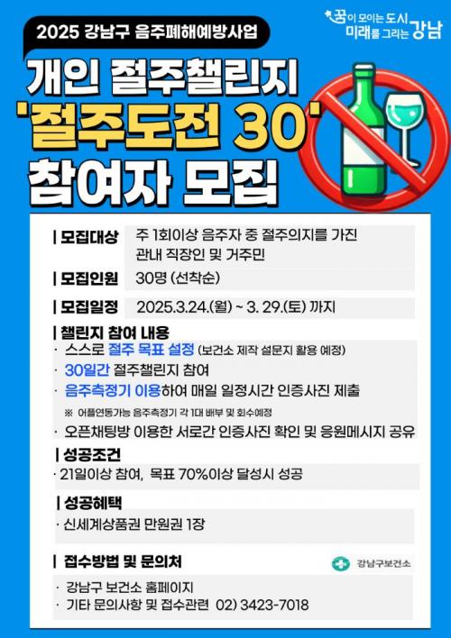 [½Åµ¿¾Æ¹æ¼Û °­³²±¸=À̽ŵ¿±âÀÚ] ²ÞÀÌ ¸ðÀÌ´Â µµ½Ã, ¹Ì·¡¸¦ ±×¸®´Â °­³²±¸°¡ 24ÀϺÎÅÍ ¡®ÀýÁÖµµÀü 30¡¯¿¡ Âü¿©ÇÒ °ü³» Á÷ÀåÀÎ ¹× ÁֹΠ30¸íÀ» ¼±Âø¼ø ¸ðÁýÇÑ´Ù. 2025 À½ÁÖÆóÇØ¿¹¹æ»ç¾÷ÀÇ ÀÏȯÀ¸·Î ÁøÇàÇÏ´Â ¡®À½ÁÖµµÀü 30¡¯Àº ½º½º·Î ¼³Á¤ÇÑ ¸ñÇ¥¸¦ ´Þ¼ºÇÔÀ¸·Î½á ÀýÁÖ¡¦