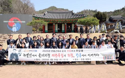 [½Åµ¿¾Æ¹æ¼Û Àü³²ÀåÈï=¹Ú±¤¿Á±âÀÚ] ÀåÈﱺÀº 26ÀÏ À嵿¸é ÇØµ¿»ç¿¡¼­ ¡®¾ÈÁß±Ù ÀÇ»ç ¼ø±¹ 115ÁÖ±â Ã߸ðÁ¦¡¯¸¦ ºÀÇàÇß´Ù°í ÀüÇß´Ù. À̳¯ Ã߸ðÁ¦¿¡´Â ±è¼º ÀåÈﱺ¼ö, ±èÀç½Â ÀåÈﱺÀÇȸ ÀÇÀåÀ» ºñ·ÔÇÑ Áö¿ª ±â°ü´Üü, Á×»ê ¾È¾¾ ¹®Áß °ü°èÀÚ, Çлý µî 1000¿©¸íÀÌ Âü¼®Çß¡¦