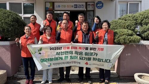 [½Åµ¿¾Æ¹æ¼Û Àü³²°­Áø=¹Ú±¤¿Á±âÀÚ] ÃÖ±Ù °æ»óµµ Áö¿ªÀ» ÈÛ¾´ ´ëÇü »êºÒ·Î »îÀÇ ÅÍÀüÀ» ÀÒÀº ÀÌÀç¹ÎµéÀ» µ½±â À§ÇØ °­Áø±º ÀÛõ¸éÀÌ ¸¶À½À» ¸ð¾Ò´Ù. ÀÛõ¸é Áö¿ª»çȸº¸ÀåÇùÀÇü(°ø°øÀ§¿øÀå ±è¼öÁø, ¹Î°£À§¿øÀå Á¤Ç×ä)°¡ 28ÀÏ Àü±¹ÀçÇØ±¸È£Çùȸ¿¡ 100¸¸¿øÀ» ±âºÎÇϸç ÀÌ¡¦