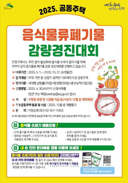 [½Åµ¿¾Æ¹æ¼Û ÀºÆò±¸=À̽ŵ¿±âÀÚ] ÀºÆò±¸´Â À½½Ä¹°·ù Æó±â¹° ÀüÀÚű×(RFID) Á¾¡¤°¨·®±â¸¦ ¼³Ä¡ÇÑ 100¼¼´ë ÀÌ»óÀÇ °øµ¿ÁÖÅÃÀ» ´ë»óÀ¸·Î ¡®À½½Ä¹°¾²·¹±â °¨·®°æÁø´ëȸ¡¯¸¦ ÇÑ´Ù°í ¹àÇû´Ù. ÀºÆò±¸´Â À½½Ä¹°·ù Æó±â¹° ÃÑ ¹ß»ý·®ÀÇ 77%°¡ °¡Á¤¿ë ¹èÃâ·®¿¡¼­ ¹ß»ýÇϰí ÀÖ´Ù¡¦