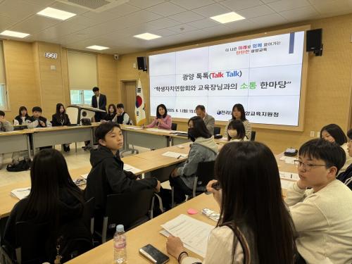 [½Åµ¿¾Æ¹æ¼Û Àü³²±¤¾ç=À̽ŵ¿±âÀÚ] Àü¶ó³²µµ±¤¾ç±³À°Áö¿øÃ»Àº Áö³­ 4¿ù 1ÀÏ(È­)°ú 2ÀÏ(¼ö) ¾çÀϰ£ ÇлýÀÚÄ¡ Ȱ¼ºÈ­¸¦ À§ÇÑ ´Ùä·Î¿î ÇÁ·Î±×·¥À» ÁøÇàÇϸç ÇлýµéÀÇ ÁÖµµÀûÀÎ Âü¿©¿Í ¹ÎÁÖÀûÀÎ ¸®´õ½Ê ÇÔ¾çÀ» À§ÇÑ ¶æ±íÀº ½Ã°£À» °¡Á³´Ù. ÅåÅå(Talk Talk) ¼ÒÅë ÇѸ¶´ç:¡¦