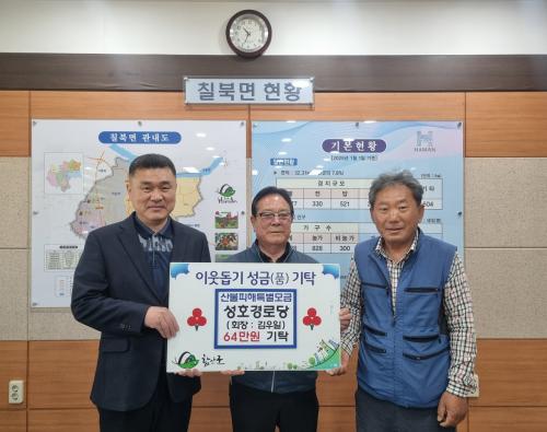 [½Åµ¿¾Æ¹æ¼Û °æ³²ÇÔ¾È=À̽ŵ¿±âÀÚ] ÇԾȱº Ä¥ºÏ¸éÀº ¼ºÈ£¸¶À» °æ·Î´ç ȸÀå ¹× È¸¿ø Àϵ¿ÀÌ Ä¥ºÏ¸é»ç¹«¼Ò¸¦ ¹æ¹®ÇØ ¿µ³²Áö¿ª »êºÒÇÇÇØ ¼º±Ý 64¸¸ ¿øÀ» ±âŹÇß´Ù°í 15ÀÏ ¹àÇû´Ù. ±è¿ìÀÏ ¼ºÈ£°æ·Î´ç ȸÀå°ú ÀÌÁ¾±¹ ÀÌÀåÀº ¡°Å« ±Ý¾×Àº ¾Æ´ÏÁö¸¸ »êºÒ·Î ÇÇÇØ¸¦ ÀÔÀº ÀÌ¡¦