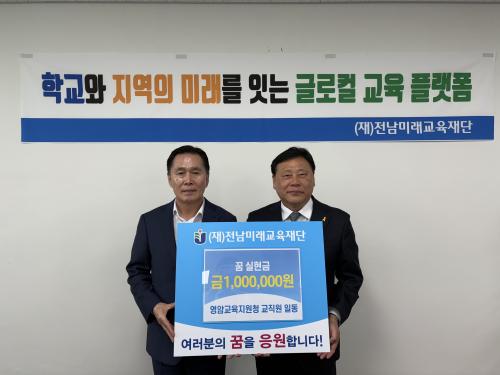 [½Åµ¿¾Æ¹æ¼Û Àü³²¿µ¾Ï=À̽ŵ¿±âÀÚ] Àü¶ó³²µµ ¿µ¾Ï±³À°Áö¿øÃ»Àº 16ÀÏ Àü³²¹Ì·¡±³À°Àç´Ü¿¡ 100¸¸ ¿øÀÇ ²Þ ½ÇÇö±ÝÀ» ±âŹÇß´Ù. À̹ø ±âŹÀº ¿µ¾Ï±³À°Áö¿øÃ» Àü Á÷¿øÀ» ´ë»óÀ¸·Î ¿î¿µÇÑ ¡®±Û·ÎÄà ¿µ¾Ï±³À° ½ÇÇöÀ» À§ÇÏ¿© ±â(Ѩ)°¡(Ê¥)Âù(óÇ)ÇѸ¶´ç¡¯ ³ª´® Çø®¸¶ÄÏÀ» ÅëÇØ¡¦