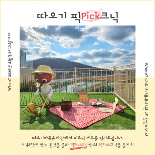 [½Åµ¿¾Æ¹æ¼Û ½ÃÈï½Ã=À̽ŵ¿±âÀÚ] ½ÃÈï½Ã µû¿À±â¾Æµ¿¹®È­°üÀÌ 4¿ùºÎÅÍ 10¿ù ¸»±îÁö °ü¶÷°´À» ´ë»óÀ¸·Î ¡®µû¿À±â ÇÈ(pick)Å©´Ð¡¯À» ¿î¿µÇÑ´Ù. ÇÈ(pick)Å©´ÐÀº ¡®°í¸£´Ù(Pick)¡¯¿Í ¼Òdz(Picnic)À» ÇÕÄ£ Á¶¾î·Î, ÀÌ´Â °¡Á·µéÀÌ ¾ß¿Ü¿¡¼­ ¹®È­¿Í ¿©°¡ Ȱµ¿À» Áñ±æ ¼ö ÀÖµµ¡¦