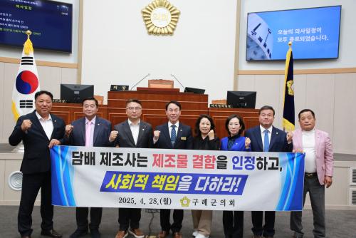 [½Åµ¿¾Æ¹æ¼Û ±¸·Ê=À±¼ºÁÖ ±âÀÚ] ±¸·Ê±ºÀÇȸ(ÀÇÀå À屿¼±)´Â Áö³­ 4¿ù 28ÀÏ Á¦319ȸ ÀÓ½Ãȸ Á¦1Â÷ º»È¸ÀÇ¿¡¼­ ¡¸´ã¹è Á¦Á¶¹°ÀÇ °áÇÔ ÀÎÁ¤ ¹× »çȸÀû Ã¥ÀÓ Ã˱¸ °ÇÀǾȡ¹À» äÅÃÇß´Ù°í 28ÀÏ ¹àÇû´Ù. À̹ø °ÇÀǾȿ¡¼­´Â ¡ã´ã¹è Á¦Á¶»ç°¡ ¸ðµç À¯ÇØ ¼ººÐ°ú Èí¿¬ÀÇ À§Ç輺¡¦