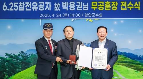 [½Åµ¿¾Æ¹æ¼Û °æ³²ÇÔ¾È=À̽ŵ¿±âÀÚ] ÇԾȱºÀº Áö³­ 24ÀÏ ¿ÀÈÄ 2½Ã ÇԾȱºÃ» ±º¼ö½Ç¿¡¼­ 6.25ÀüÀï ÂüÀü¿ë»çÀÎ °í(ͺ) ¹Ú¿ë±Ç´Ô¿¡ ´ëÇÑ ¹«°øÈÆÀå Àü¼ö½ÄÀ» °³ÃÖÇß´Ù°í ¹àÇû´Ù. À̹ø Àü¼ö½ÄÀº ±¹¹æºÎ¿Í À°±ºº»ºÎ°¡ ÃßÁøÇÏ´Â ¡®6.25ÀüÀï ¹«°øÈÆÀå ã¾ÆÁֱ⠻ç¾÷¡¯ÀÇ ÀÏȯ¡¦