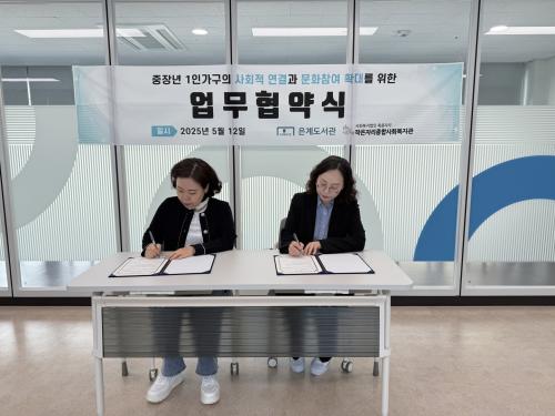 [½Åµ¿¾Æ¹æ¼Û ½ÃÈï½Ã=À̽ŵ¿±âÀÚ] ½ÃÈï½Ã Àº°èµµ¼­°üÀº Áö³­ 5¿ù 12ÀÏ µµ¼­°ü ³»¿¡¼­ ÀÛÀºÀÚ¸®Á¾ÇÕ»çȸº¹Áö°ü°ú ¡®ÁßÀå³â 1ÀÎ °¡±¸ÀÇ »çȸÀû ¿¬°á°ú ¹®È­ Âü¿© È®´ë¸¦ À§ÇÑ ¾÷¹«Çù¾à¡¯À» ¸Î¾ú´Ù. À̷νá ÁßÀå³â 1ÀÎ °¡±¸ÀÇ »çȸÀû °í¸³ ¿¹¹æ°ú µ¶¼­¹®È­ ±â¹Ý °øµ¿Ã¼ Çü¼º¡¦