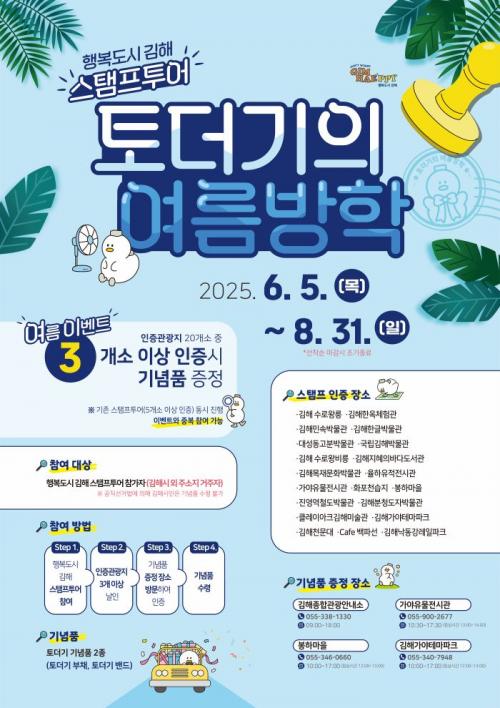 [½Åµ¿¾Æ¹æ¼Û °æ³²±èÇØ=³²±Ã¿µ±â±âÀÚ] ±èÇØ½Ã ½ºÅÆÇÁ Åõ¾î°¡ ¿©¸§¸ÂÀÌ Æ¯º° À̺¥Æ®¸¦ ÁøÇàÇÑ´Ù. ½Ã¿¡ µû¸£¸é 5ÀϺÎÅÍ 8¿ù 31ÀϱîÁö ½ºÅÆÇÁ Åõ¾î¿¡ Âü°¡ÇÏ´Â °ü±¤°´ÀÌ ÀÎÁõÁö 3°³¼Ò ÀÌ»ó ¹æ¹® ½Ã ±â³äǰÀ» ÁõÁ¤ÇÑ´Ù. ±â³äǰÀº ½Ã ij¸¯ÅÍ Åä´õ±â°¡ µé¾î°£ ºÎä¿Í ¹êµåÀÌ¡¦
