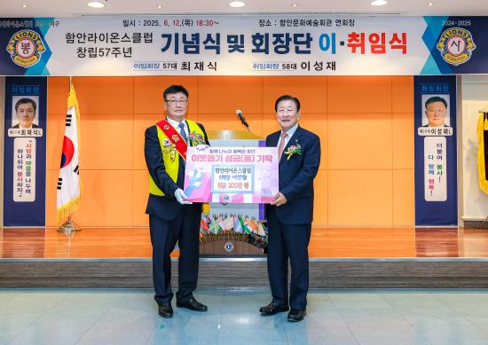 [½Åµ¿¾Æ¹æ¼Û °æ³²ÇÔ¾È=À̽ŵ¿±âÀÚ] ÇԾȶóÀ̿½ºÅ¬·´Àº Áö³­ 6¿ù 12ÀÏ, ÇԾȹ®È­¿¹¼úȸ°ü ¿¬È¸Àå¿¡¼­ Á¦58´ë ÀÌ¡¤ÃëÀÓ½ÄÀ» °³ÃÖÇϰí Áö¿ª»çȸ¿¡ µû¶æÇÑ ³ª´®À» ½ÇõÇÏ´Â ±âʽÄÀ» ÇÔ²² ÁøÇàÇß´Ù. À̳¯ ½ÅÀÓ È¸Àå À̼ºÀç¾¾´Â ÃëÀÓÀ» ±â³äÇÏ¿© Áö¿ªÀÇ Àú¼ÒµæÃþ ¹× º¹Áö »ç¡¦