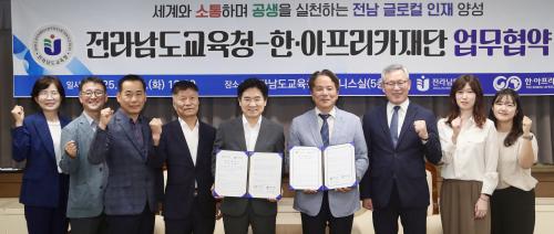 [½Åµ¿¾Æ¹æ¼Û Àü³²=À̽ŵ¿±âÀÚ] Àü¶ó³²µµ±³À°Ã»Àº 17ÀÏ Ã»»ç ºñÁî´Ï½º½Ç¿¡¼­ ÇÑ¡¤¾ÆÇÁ¸®Ä«Àç´Ü°ú ¾÷¹«Çù¾àÀ» ü°áÇϰí û¼Ò³â ±¹Á¦±³·ù ¹× ¾ÆÇÁ¸®Ä« ÀÌÇØ±³À° Ȱ¼ºÈ­¿¡ Çù·ÂÇϱâ·Î ¾à¼ÓÇß´Ù. À̳¯ Çù¾à½Ä¿¡´Â ±è´ëÁß ±³À°°¨À» ºñ·ÔÇÑ Àü³²±³À°Ã» °ü°èÀÚ, ±è¿µÃ¤ ÀÌ»çÀ塦