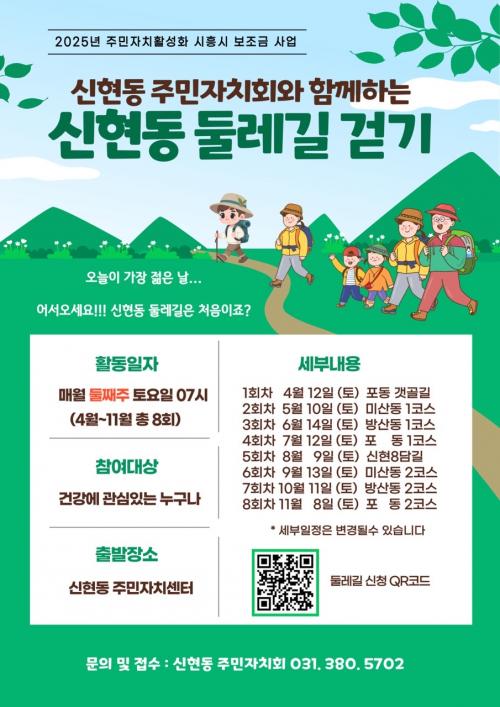 [½Åµ¿¾Æ¹æ¼Û ½ÃÈï½Ã=À̽ŵ¿±âÀÚ] ½ÃÈï½Ã ½ÅÇöµ¿ ÁÖ¹ÎÀÚġȸ´Â ÁֹΠ°Ç°­ ÁõÁø°ú °øµ¿Ã¼ Ȱ¼ºÈ­¸¦ À§ÇÑ Á¤±â Çà»çÀÎ ½ÅÇöµ¿ µÑ·¹±æ °È±â¸¦ Áö³­ 6¿ù 14ÀÏ 1ȸ Â÷¸¦ ½ÃÀÛÀ¸·Î ¿À´Â 11¿ù±îÁö À̾´Ù. ÀÌ Çà»ç´Â ½ÅÇöµ¿ ÁֹΠ´©±¸³ª Âü¿©ÇÒ ¼ö ÀÖ´Â ¿­¸° °È±â ÇÁ·Î±×·¥¡¦