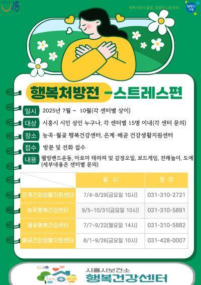 [½Åµ¿¾Æ¹æ¼Û ½ÃÈï½Ã=À̽ŵ¿±âÀÚ] ½ÃÈï½Ã Çູ°Ç°­¼¾ÅÍ´Â Áö¿ªÁÖ¹ÎÀÇ Á¤½Å°Ç°­ ÁõÁø°ú ½ºÆ®·¹½º ¿ÏÈ­¸¦ À§ÇØ 7¿ùºÎÅÍ 10¿ù±îÁö ºÏºÎ(Àº°è), ÁߺÎ(´É°î¤ý¿ù°ù), ³²ºÎ(¹è°ð) ±Ç¿ªº°·Î ¼ºÀÎ ´ë»ó ½ºÆ®·¹½º ¿ÏÈ­ ÇÁ·Î±×·¥À» ¼øÂ÷ÀûÀ¸·Î ¿î¿µÇÑ´Ù. À̹ø ÇÁ·Î±×·¥Àº ±Ç¿ªº° ¡¦