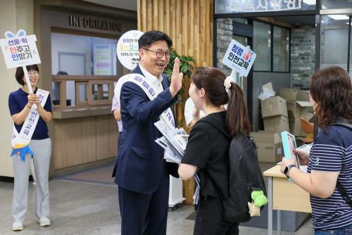[½Åµ¿¾Æ¹æ¼Û ÀÎõ=À±¹Î½Ä±âÀÚ]µµ¼ºÈÆ ÀÎõ±¤¿ª½Ã±³À°°¨Àº 2ÀÏ ±³À°Ã» º»°ü 1Ãþ¿¡¼­ Á÷¿øÀÇ Ã»·Å°áÀǸ¦ ´ÙÁö´Â ¡®Ã»·Å µ¿Çà ÇÏÀÌ-ÆÄÀ̺ê(high-five)¡¯Ä·ÆäÀο¡ ÇÔ²²Çß´Ù. À̹ø Ä·ÆäÀÎÀº ±³À°°¨ÀÇ °­·ÂÇÑ ¹ÝºÎÆÐ û·Å ÀÇÁö¸¦ Ç¥¸íÇϰí, û·ÅÇÑ Á¶Á÷ ¹®È­ Á¶¼º°ú Á÷¿øµé¡¦