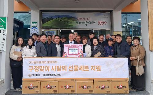 [½Åµ¿¾Æ¹æ¼Û °æ³²ÇÔ¾È=À̽ŵ¿±âÀÚ] ÇԾȱº °¡¾ßÀ¾Àº Áö³­ 11ÀÏ ±¹Á¦±¸È£°³¹ß ¿£Áö¿À(NGO) (»ç)¿ùµå½¦¾î¿¡¼­ ¼³ ¸íÀýÀ» ¸Â¾Æ °ü³» Ãë¾à°èÃþ 150¼¼´ë¸¦ À§ÇØ 700¸¸ ¿ø »ó´çÀÇ ¼±¹°¼¼Æ®¸¦ ±âŹÇß´Ù°í ¹àÇû´Ù. À̹ø ±âŹÀº ¿ùµå½¦¾î°¡ ÃßÁø ÁßÀÎ ¡®»ç¶ûÀÇ ¹°Ç° Áö¿ø¡¯ »ç¡¦