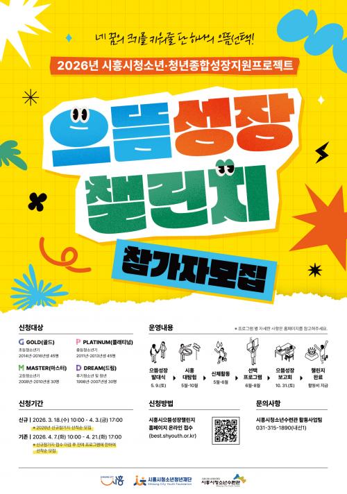 [½Åµ¿¾Æ¹æ¼Û ½ÃÈï½Ã=À̽ŵ¿±âÀÚ] ½ÃÈï½Ãû¼Ò³âû³âÀç´ÜÀº ¿À´Â 3¿ù 18ÀϺÎÅÍ 4¿ù 21ÀϱîÁö 5ÁÖ°£ ¡®½ÃÈï½ÃÀ¸¶ä¼ºÀå縰Áö¡¯¿¡ Âü¿©ÇÒ Ã»¼Ò³â¤ýû³âÀ» ¸ðÁýÇÑ´Ù. ¡®½ÃÈï½ÃÀ¸¶ä¼ºÀå縰Áö¡¯´Â 2021³â ½ÃÈï½Ãû¼Ò³âû³âÀç´ÜÀÌ °³¹ßÇÑ Ã»¼Ò³â¤ýû³â Á¾ÇÕ¼ºÀåÁö¿ø ÇÁ·ÎÁ§Æ®¡¦